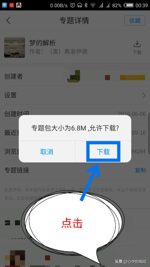 在打开的详情界面,右上角收藏的下面有个下载选项,点击一下就可以下载了。如图所示