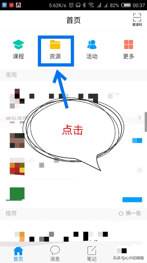 学习通里面的图书是可以下载的,在首页界面,点击顶部的资源选项。如图所示