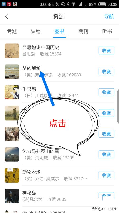 在打开的界面中,点击上面的书的名称,打开图书详情界面。如图所示