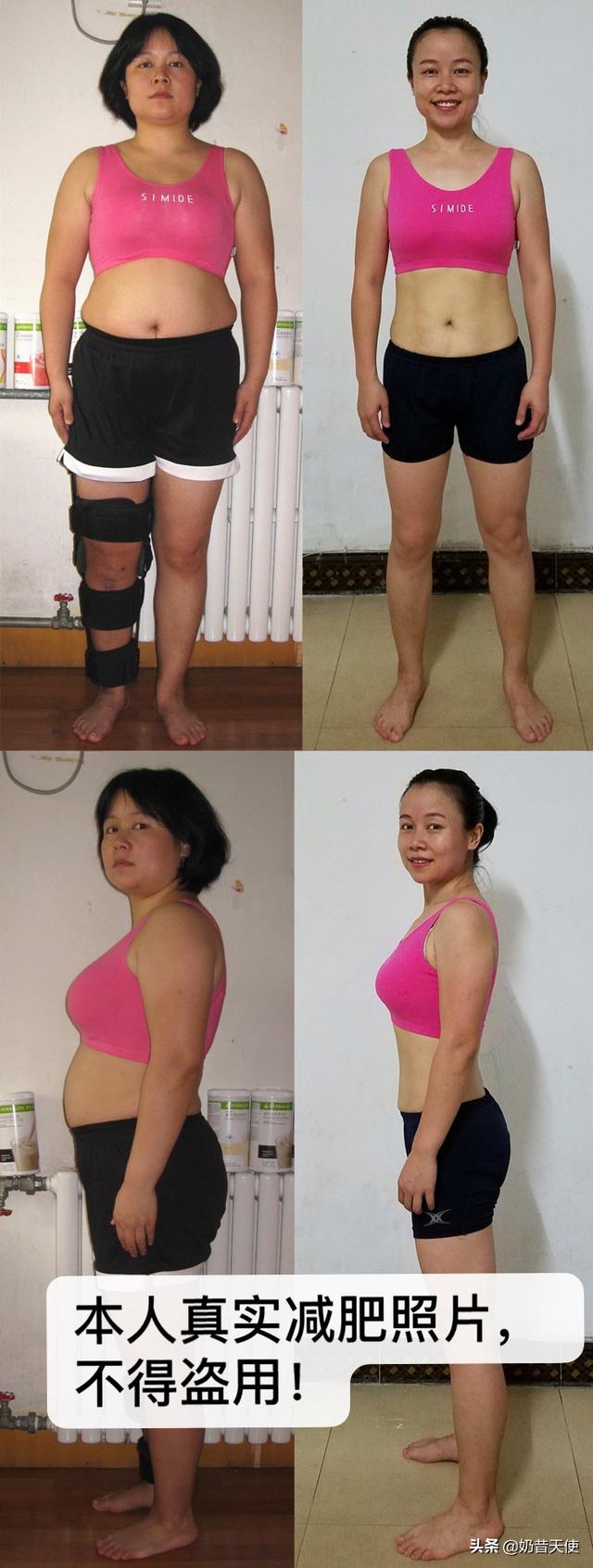 本人产后155斤,三个月减重25斤,累计减重41斤,腰围小了21厘米。