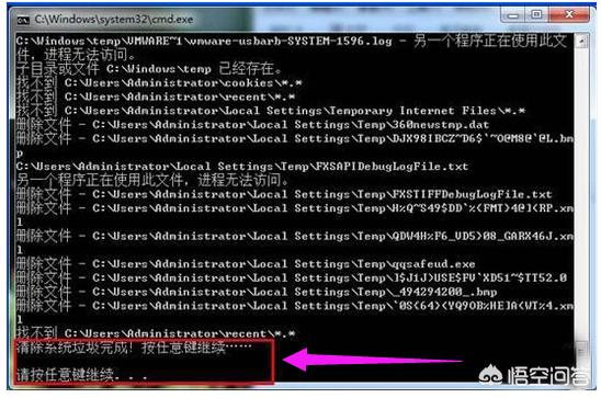 3.清理垃圾,根据提示,点击窗口,点击键盘任意键结束,完成清理。